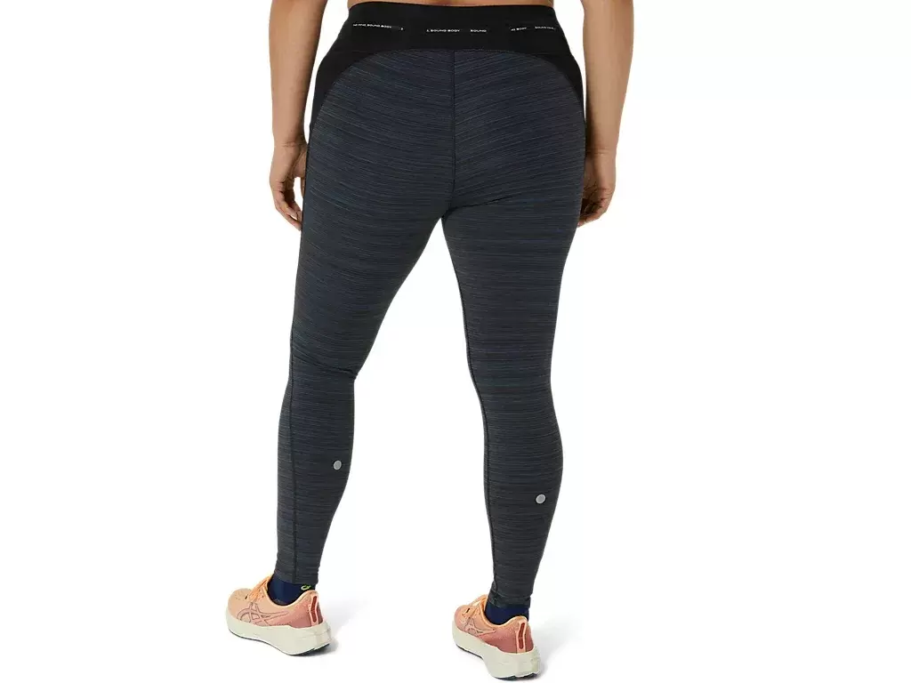 Grazie alla vestibilità di supporto e al morbido tessuto elasticizzato, questi leggings offrono una sensazione di maggiore comfort a temperature variabili. Questi leggings sono dotati di due tasche laterali sulle cosce. Inoltre, è presente un sistema di archiviazione con passanti elasticizzati per una giacca, una maglietta, un asciugamano o qualsiasi altro elemento essenziale per la corsa con lo slogan “SOUND MIND, SOUND BODY®”.