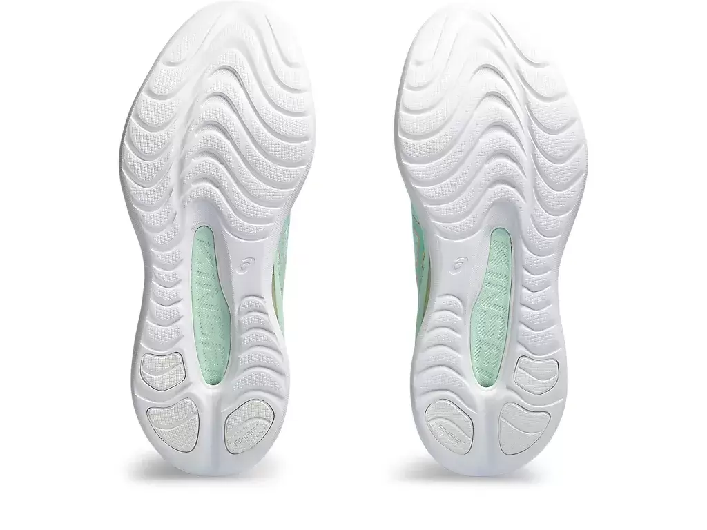Una piastra in TPU è posizionata al centro dell’intersuola per garantire uno stacco più dinamico. Funziona anche in tandem con la nuova schiuma di gomma e la tecnologia Hybrid GEL® per contribuire a creare transizioni più fluide sotto il piede.