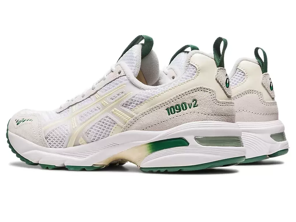 La sneaker GEL-1090™ V2 del 2003 è stata riprogettata con un tocco moderno. È stata rielaborata con rivestimenti in pelle scamosciata e passanti posteriori per un look più contemporaneo. Simili al movimento di una bandiera a scacchi che sventola, linee sinuose si disegnano lungo l’intersuola. Il tallone è rivestito con tecnologia GEL™ per migliorare il comfort.