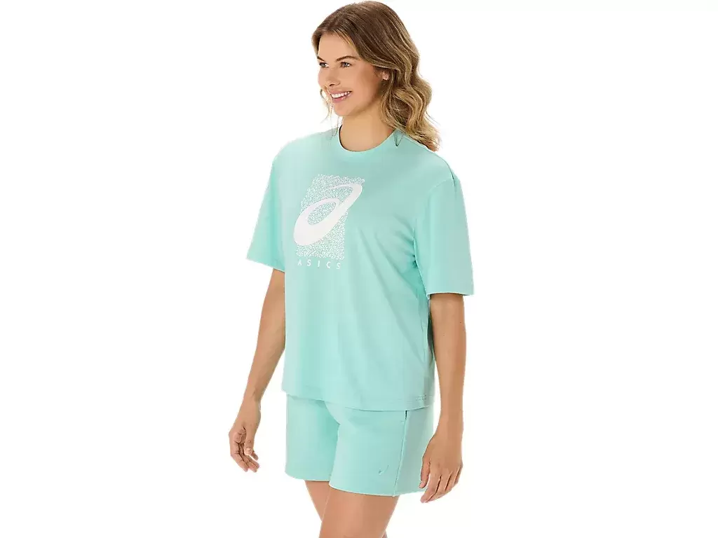 La parte superiore è inoltre impreziosita da una grafica stagionale ASICS® Spiral, lunghezza corta, design dalla vestibilità comoda e spacchi laterali per facilitare i movimenti.