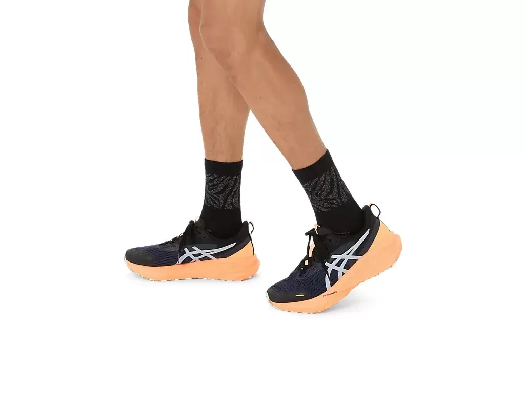La stampa grafica in maglia si ispira alla tradizionale stampa all-over ASICS® e alle strisce ASICS®. Il calzino presenta anche elementi giapponesi che incarnano le nostre radici giapponesi.