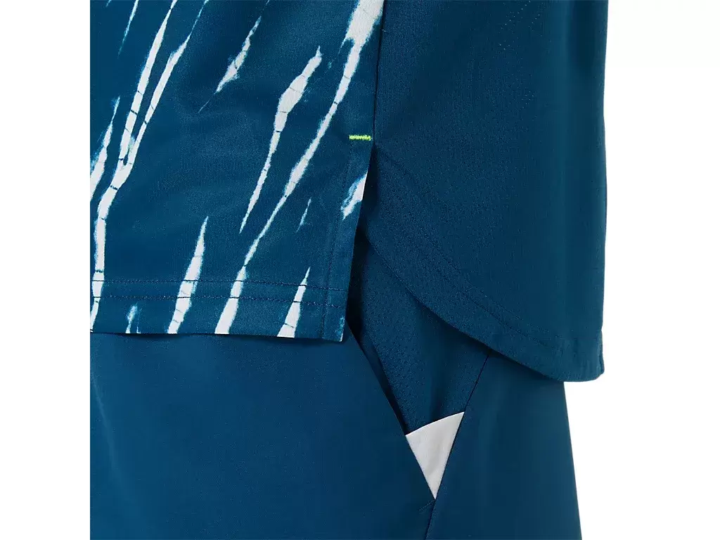 Nel frattempo, questa maglia presenta una stampa grafica all-over ispirata allo Shibori, la tradizionale tecnica di tintura giapponese.