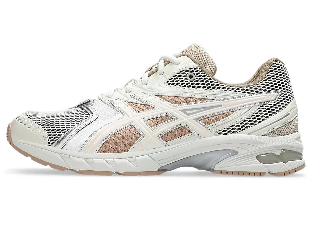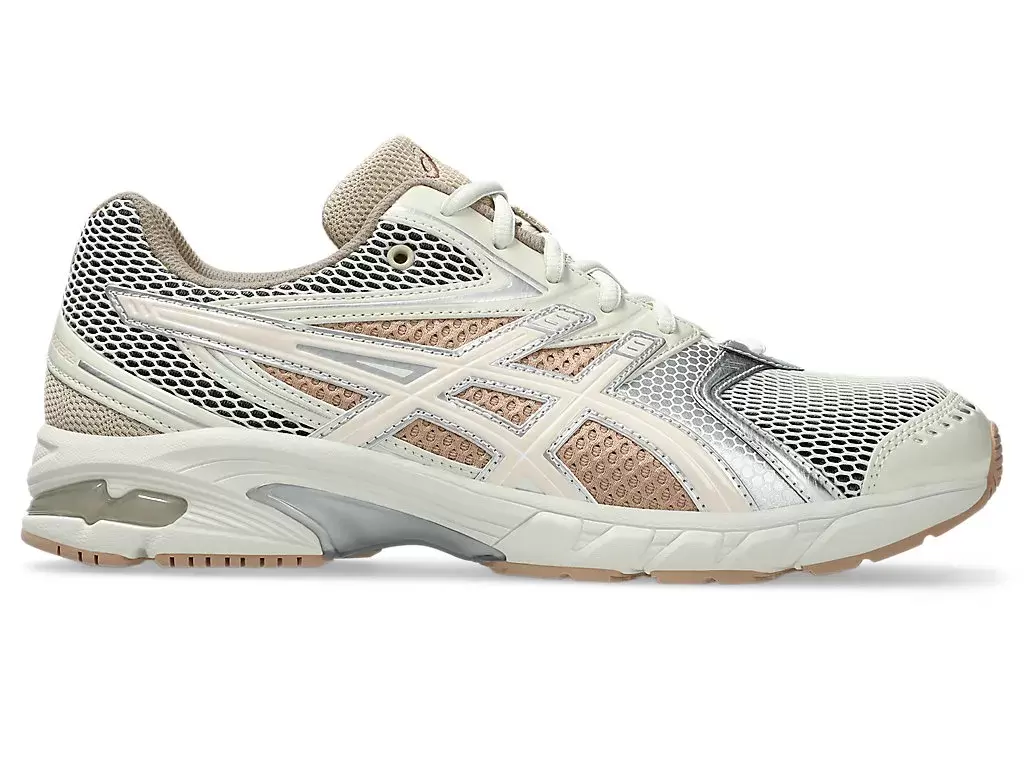 Le caratteristiche distintive della tomaia includono l’iconico design a quarto di pannello e i pannelli in mesh aperto. Questi dettagli conferiscono alla scarpa un’estetica dinamica, rappresentativa dei modelli da running di quell’epoca.