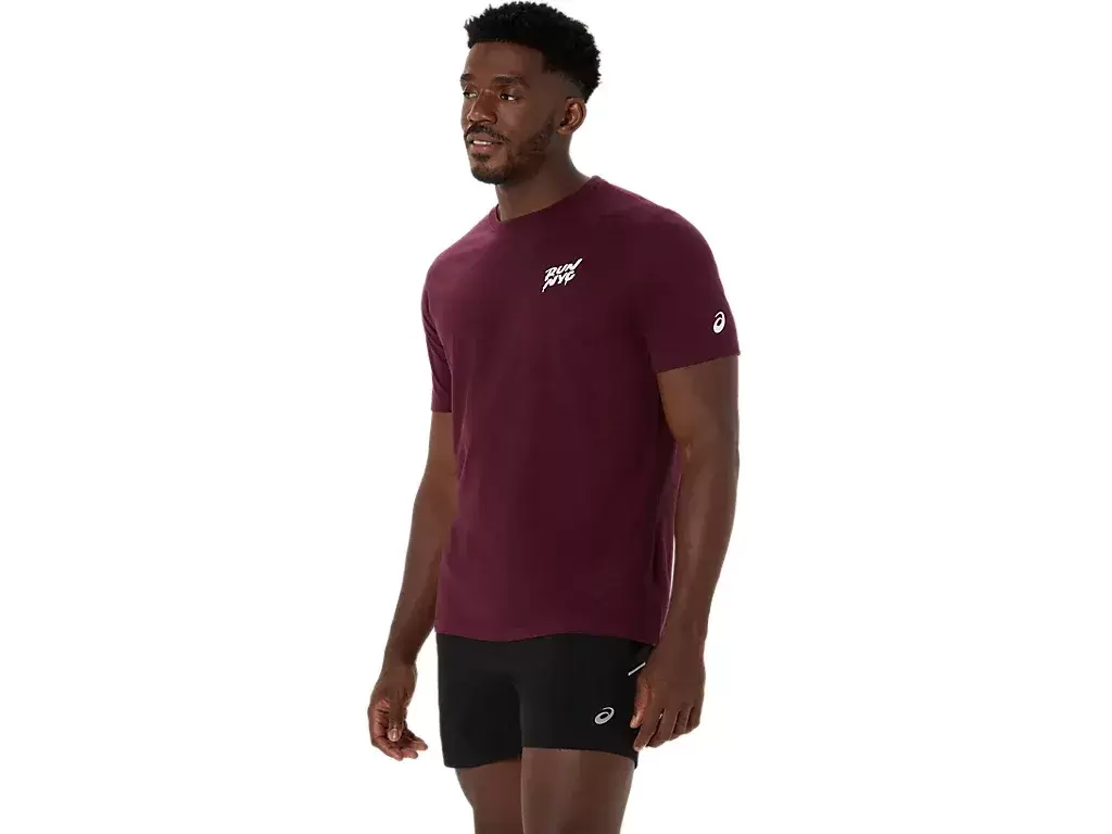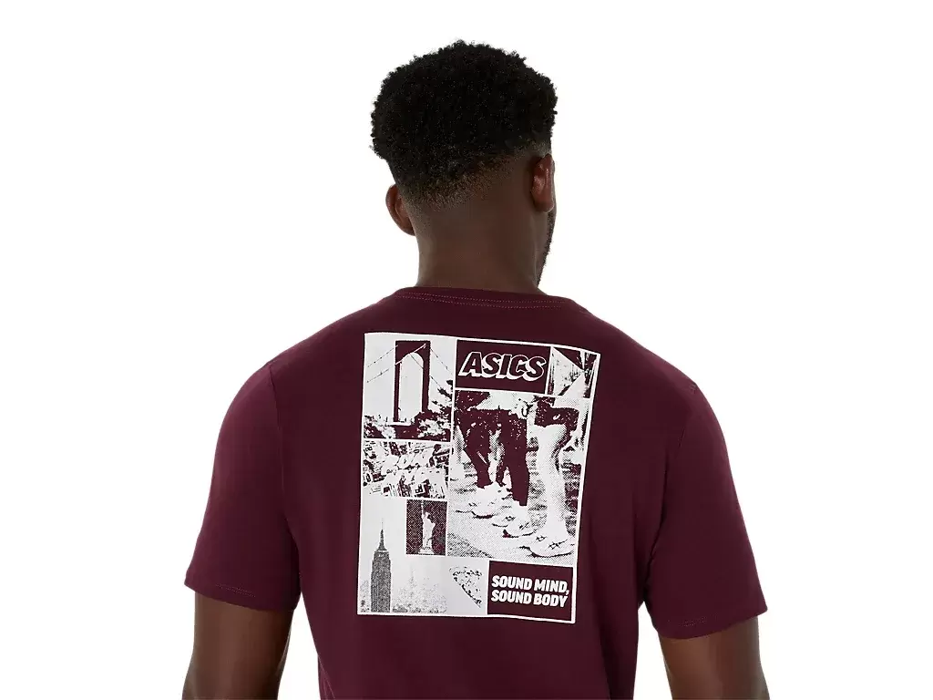 Questa comoda maglietta a maniche corte in maglia trae ispirazione dalla corsa a New York